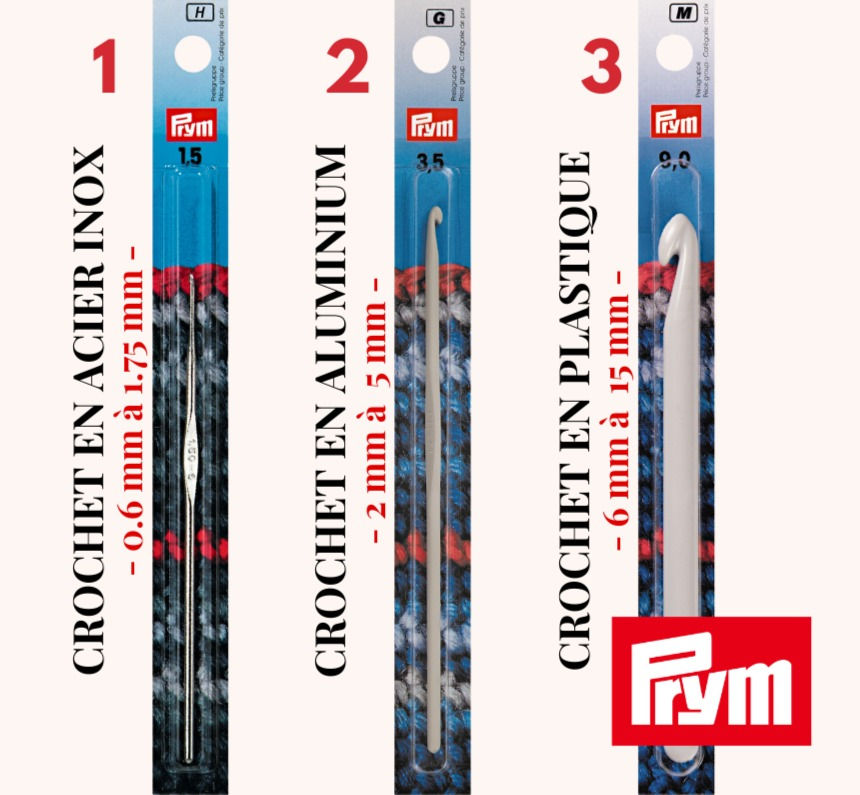 Crochet léger - PRYM - Plusieurs choix de tailles (0.6 mm à 15 mm)